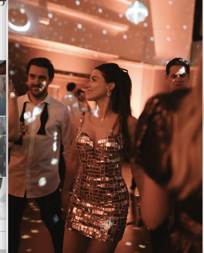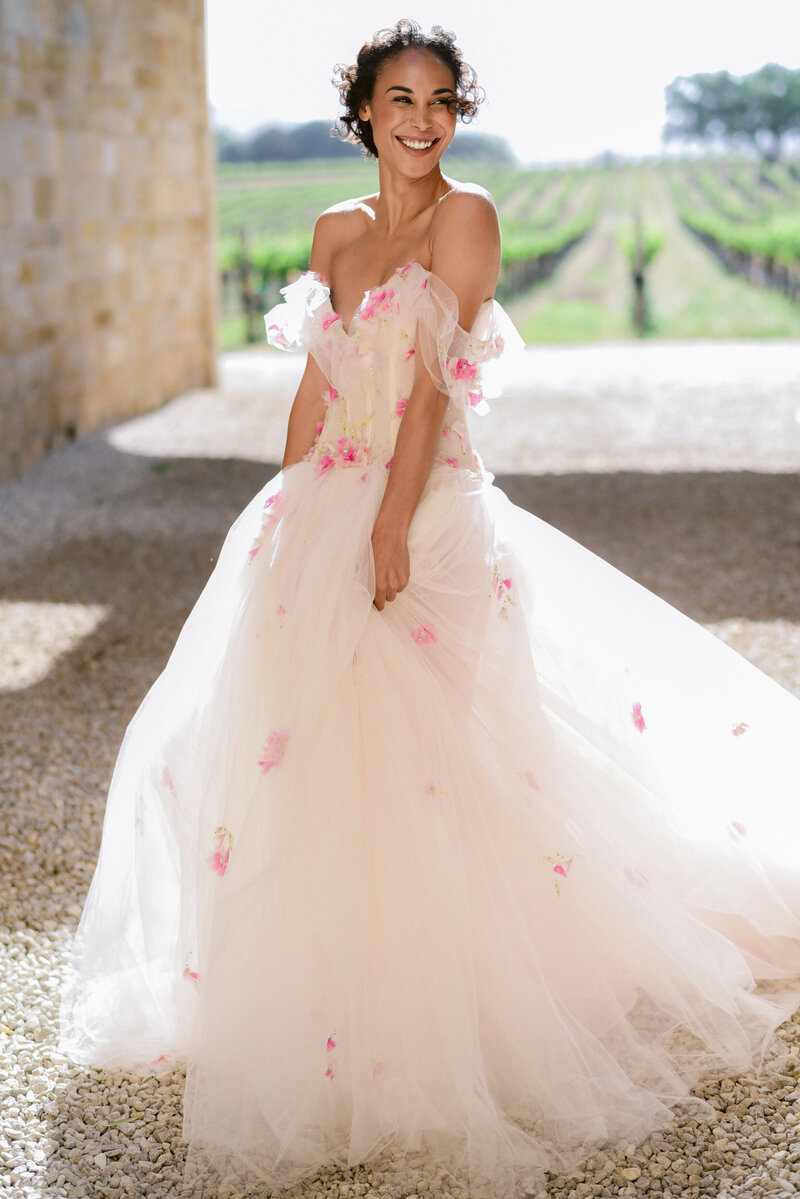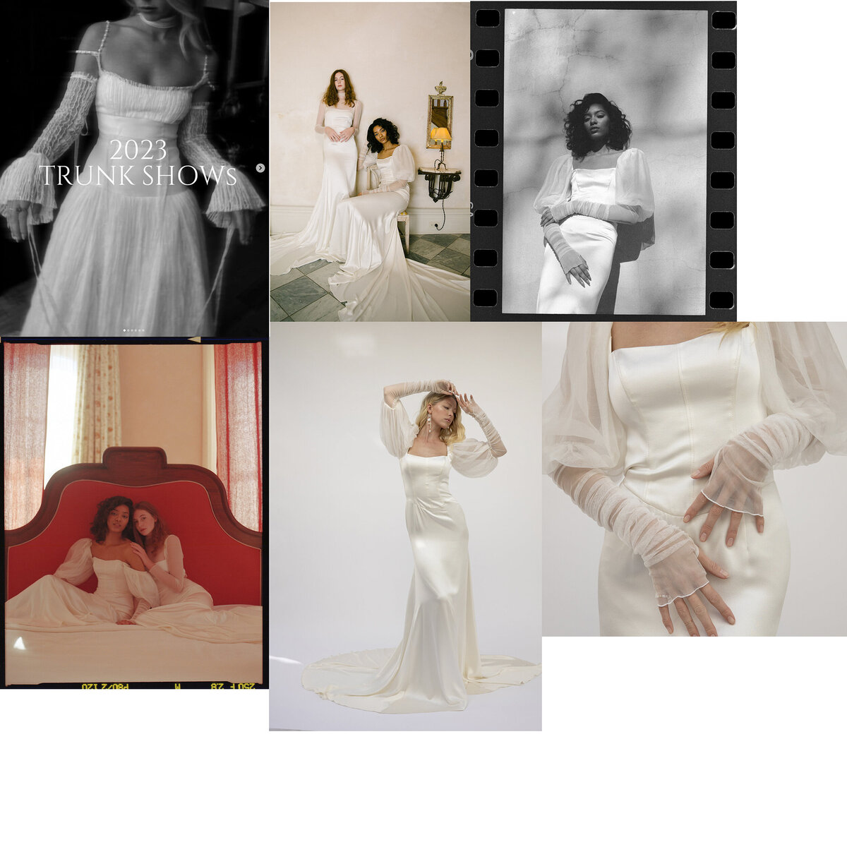 Multiple wedding looks rehearsal look, ceremony look, after party look and more.